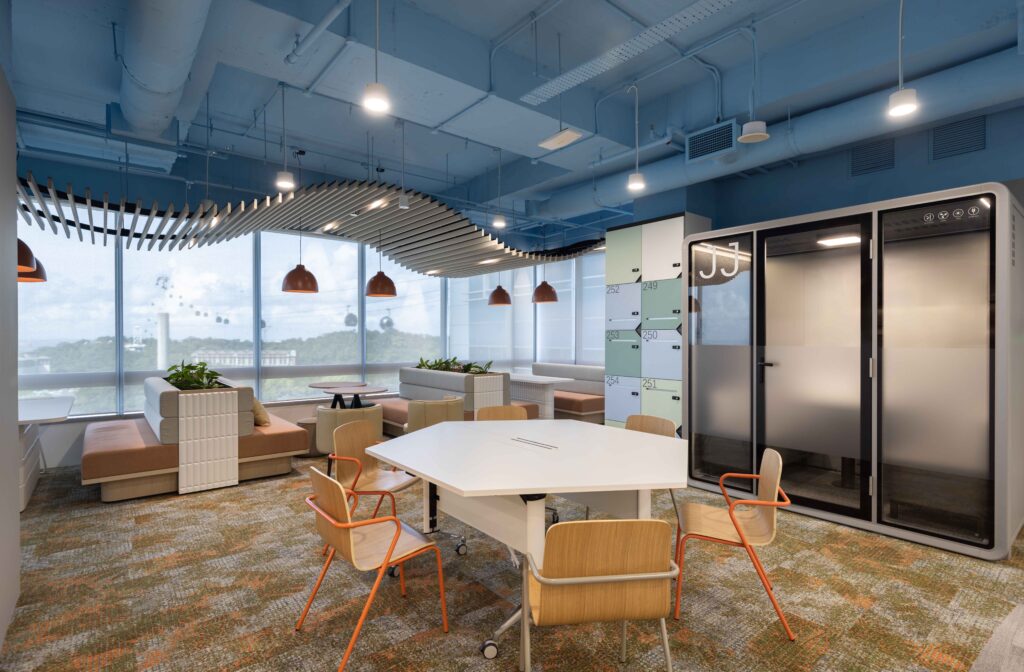 大胆的几何线条为框架,辅以自然色调相互平衡,使这里成为激发开放式协作与灵感碰撞的活力场域。