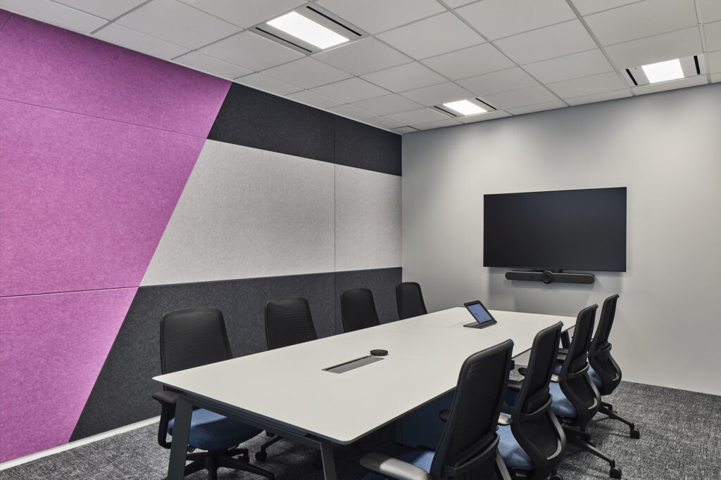 专为战略讨论打造的会议室,将卓越性能与视觉冲击力完美融合。几何三色吸音特色墙在增强吸音效果的同时,呈现处大胆前卫的现代美学,彰显了OKG对技术卓越与精确度的追求。
